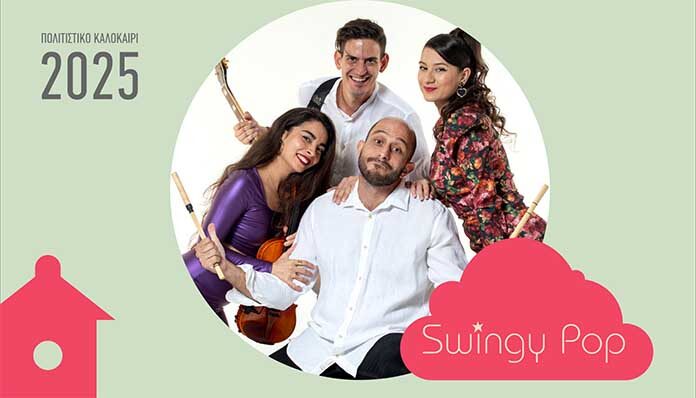 Στο πλαίσιο του Πολιτιστικού Καλοκαιριού 2025 – Φεστιβάλ Αυλής, υποδεχόμαστε τους αγαπημένους «Swingy Pop» σε ένα ξεχωριστό live, γεμάτο ρυθμό και ενέργεια!