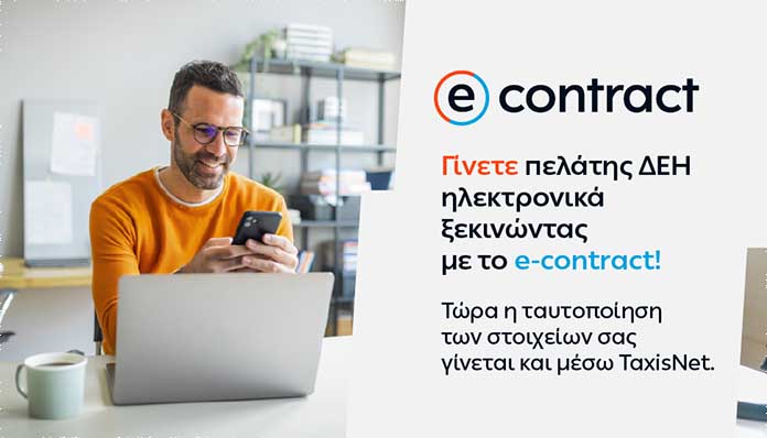 Οι ενδιαφερόμενοι μπορούν να προχωρήσουν σε ενεργοποίηση του e-contract τους με ταυτοποίηση μέσω gov.gr και στη σελίδα www.dei.gr/el/e-contract.