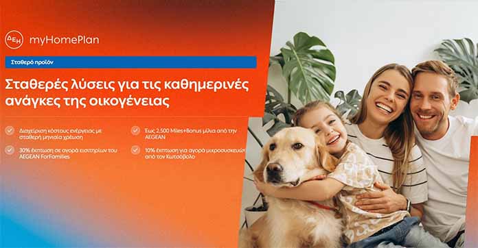 Η ΔΕΗ παρουσιάζει το νέο προϊόν ΔΕΗ myHome Plan, σχεδιασμένο για τις ανάγκες των οικογενειών και τις σύγχρονες ενεργειακές ανάγκες των πελατών. Το νέο προϊόν προσφέρει σταθερή τιμή χρέωσης, εξασφαλίζοντας στην οικογένεια τη δυνατότητα να διατηρεί σταθερό το κόστος ενέργειας κάθε μήνα με τη βοήθεια του ΔΕΗ myEnergy Coach, του ψηφιακού συμβούλου της ΔΕΗ. Παράλληλα, προσφέρει μια σειρά από αποκλειστικά προνόμια και προσφορές, εξασφαλίζοντας σημαντικές εκπτώσεις μέσα από το ολοκληρωμένο πρόγραμμα επιβράβευσης ΔΕΗ myRewards Coupons.