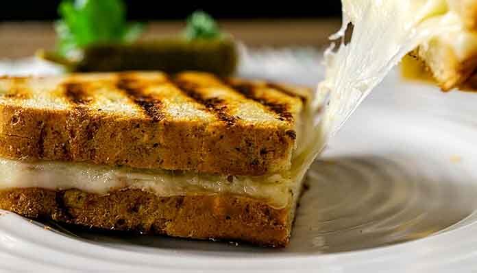 Grilled cheese με καραμελωμένο κρεμμύδι