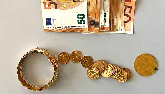 Ο συλληφθείς απέσπασε από 86χρονη ημεδαπή το χρηματικό ποσό των -1.500- ευρώ, -15- χρυσές λίρες και χρυσαφικό, συνολικής αξίας περίπου -18.000- ευρώ, τα οποία βρέθηκαν και αποδόθηκαν στην 86χρονη