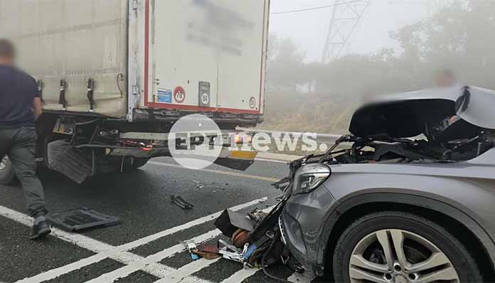 Στο συμβάν εμπλέκονταν δύο οχήματα (νταλίκα και Ι.Χ. αυτοκίνητο), ενώ η πυκνή ομίχλη που επικρατούσε στην περιοχή φαίνεται να συνέβαλε στην πρόκληση του ατυχήματος.