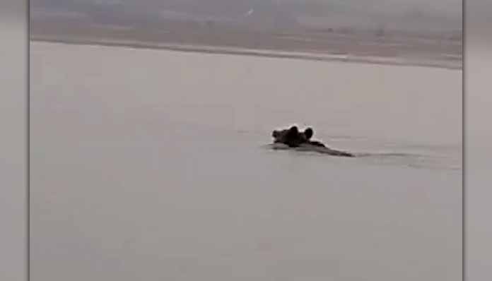 Το σπάνιο περιστατικό, που καταγράφηκε σε βίντεο από επαγγελματία ψαρά προκαλεί αίσθηση, καθώς η αρκούδα κολυμπούσε για πάνω από 90 λεπτά