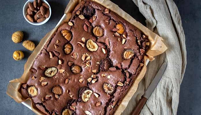 Σοκολατένιο brownie με κάστανα και αμύγδαλα