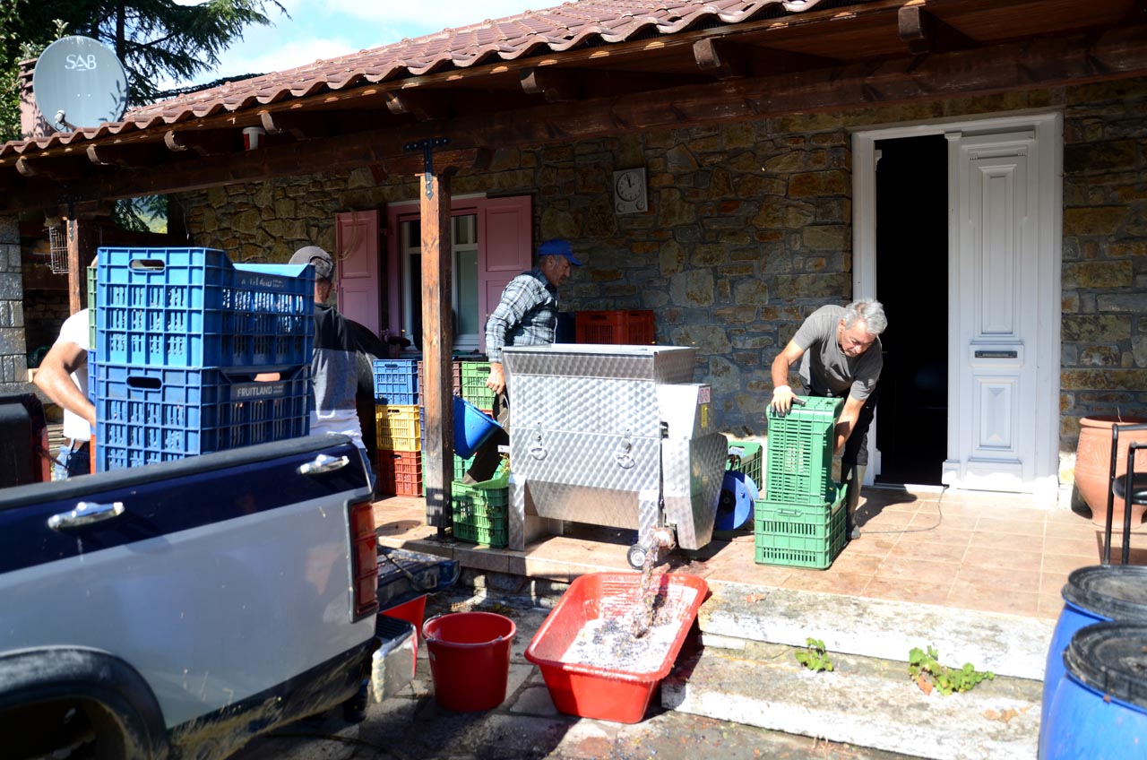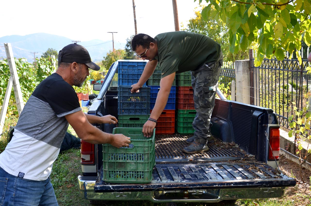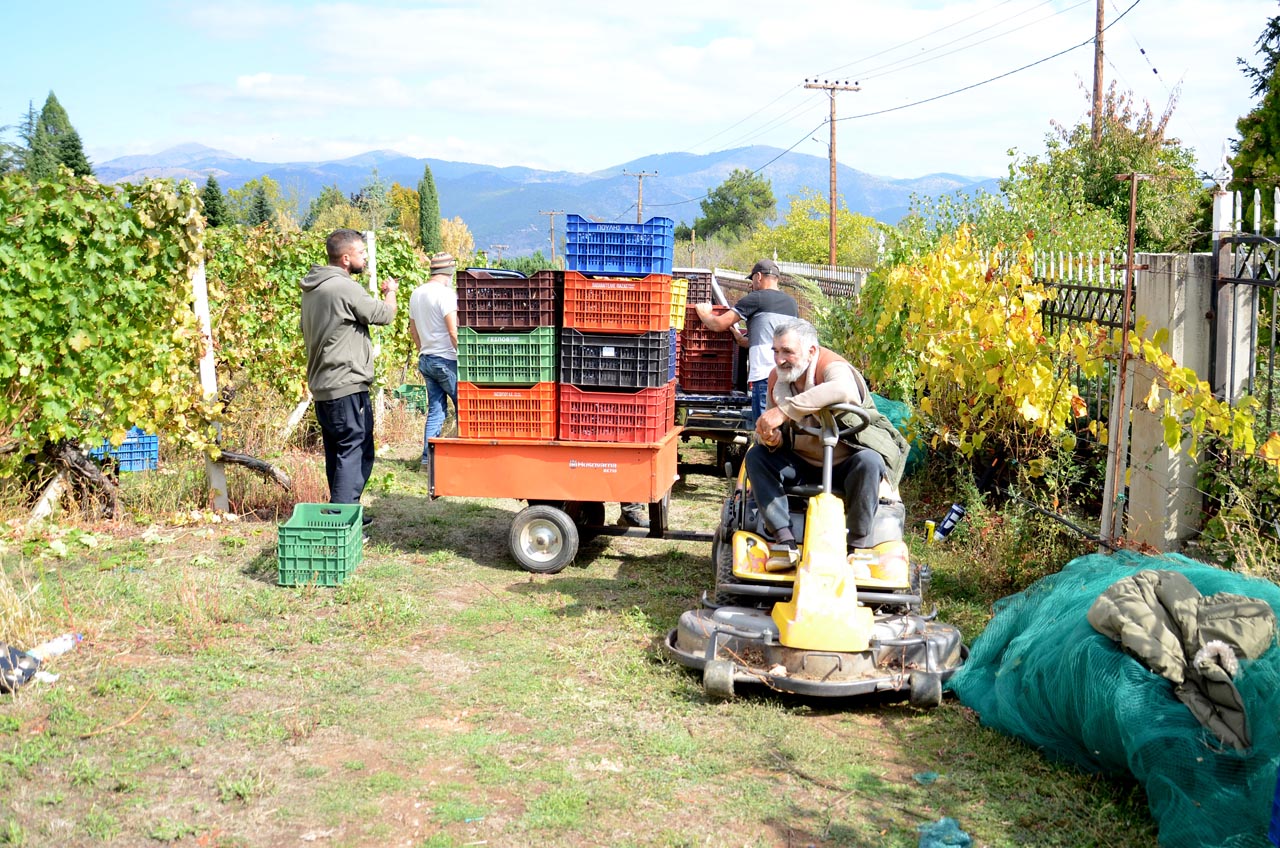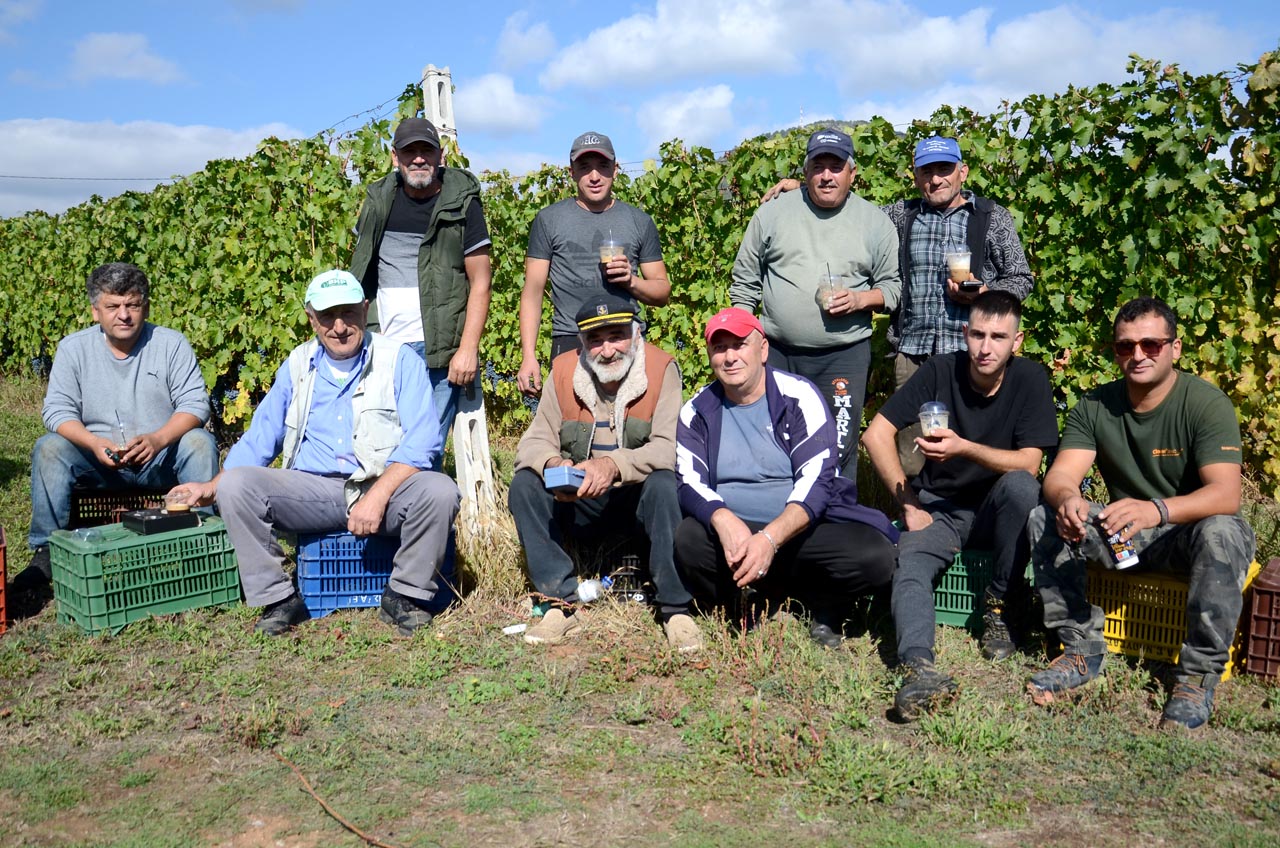 Το πρωί συγκεντρωθήκαμε όλοι εκεί, γεμάτοι ανυπομονησία και χαρά για τη μέρα που μας περίμενε. Το αμπέλι ήταν περιποιημένο και περιφραγμένο, με τα κλήματα να στηρίζονται επιμελώς σε ατσαλόσυρμα κατά μήκος. Οι σειρές απλώνονταν ευρύχωρες και καλοστοιχισμένες, δείγμα φροντίδας και αγάπης για τη γη. Τα σταφύλια, ώριμα στην ώρα τους, έδειχναν πως η φετινή σοδειά θα είναι πλούσια και ποιοτική. Όλα μέσα στο αμπέλι μαρτυρούσαν νοικοκυροσύνη και μεράκι.