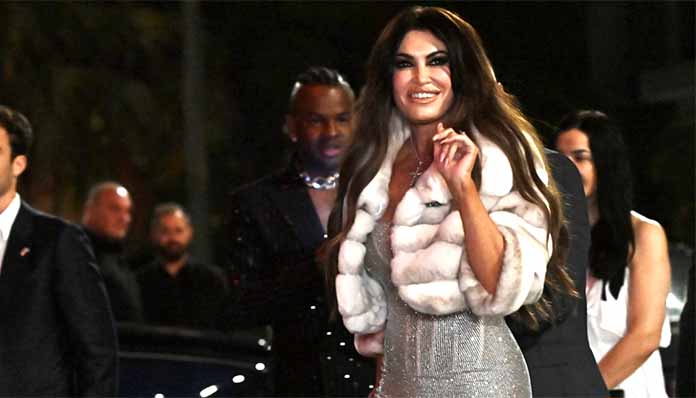 Η Κίμπερλι Γκιλφόιλ έκλεψε τις εντυπώσεις με την εμφάνιση της, φορώντας μια πολυτελή γούνα σε αποχρώσεις του ασημί και του λευκού, που ανέδειξε τη λάμψη του αστραφτερού της φορέματος. Η γούνα, με τη χαρακτηριστική της υφή και τις διακριτικές ρίγες, πρόσθεσε μια αίσθηση διαχρονικής κομψότητας και χολιγουντιανής αίγλης στο look της.