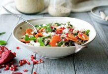 Ρίχνουμε λίγο καπνιστό μπέικον, λίγο σκόρδο, το θυμάρι, τον μαϊντανό και το καρότο.