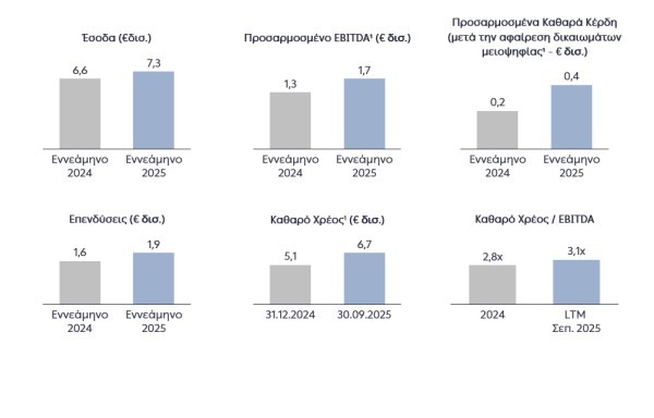 Ισχυρά αποτελέσματα με προσαρμοσμένο EBITDA στα €1,7 δισ. και καθαρά κέρδη στα €0,4 δισ. για το εννεάμηνο 2025