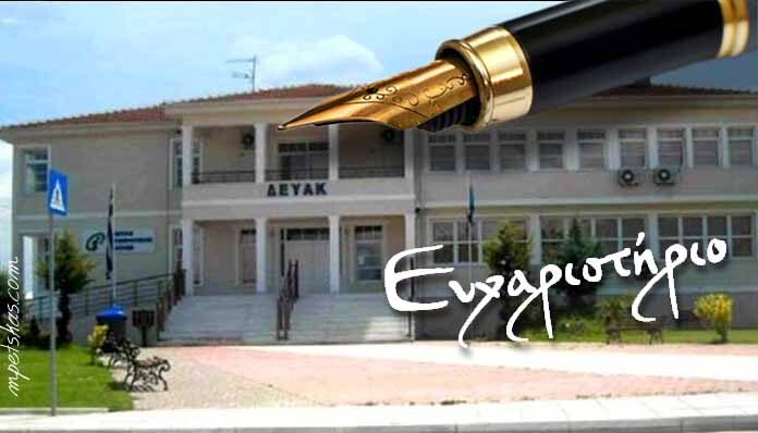 Η Δημοτική Επιχείρηση Ύδρευσης και Αποχέτευσης Καστοριάς (Δ.Ε.Υ.Α.Κ.) αισθάνεται την ανάγκη να εκφράσει δημόσια τις θερμές της ευχαριστίες προς όλους όσοι συνέβαλαν με υπευθυνότητα, αφοσίωση και άμεση ανταπόκριση στην αντιμετώπιση των σοβαρών προβλημάτων που προκλήθηκαν από τα πρόσφατα πλημμυρικά φαινόμενα σε περιοχές του Δήμου Καστοριάς.