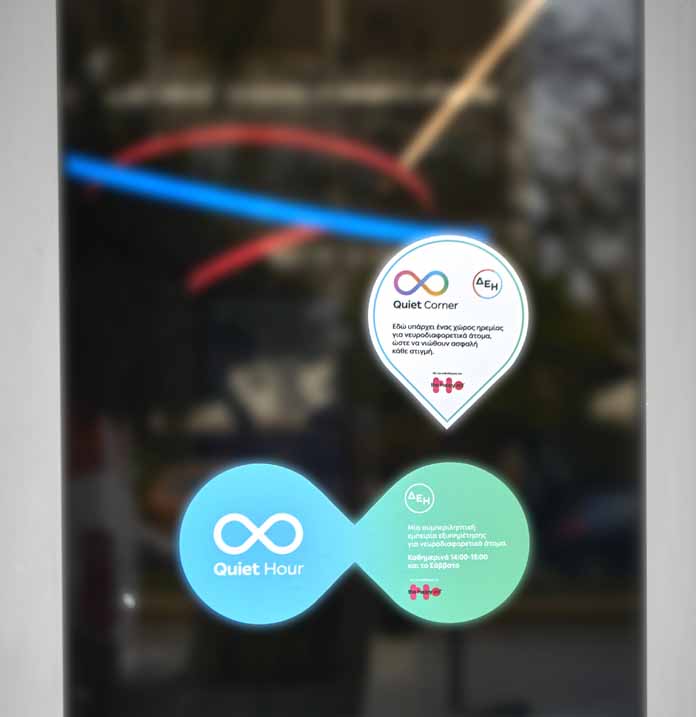 Για μία ώρα καθημερινά, καθώς και το Σάββατο, από τις 14:00 έως 15:00, τα καταστήματα της ΔΕΗ μειώνουν αισθητά τα οπτικά, ηχητικά και οσφρητικά ερεθίσματα, δημιουργώντας ένα περιβάλλον πιο ήρεμο, προβλέψιμο και φιλικό για νευροδιαφορετικά άτομα και τους συνοδούς τους. Η εφαρμογή ξεκίνησε από το κατάστημα Καλλιθέας με τη δημιουργία του πρώτου Quiet Corner και έχει εφαρμοστεί σε 24 καταστήματα συνολικά.