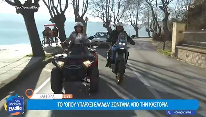 Aπό την καρδιά της Δυτικής Μακεδονίας, εκεί όπου η φύση αγκαλιάζει την ιστορία, η δημοσιογράφος του ΣΚΑΪ, πάνω σε γουρούνα, κάνει μια μοναδική διαδρομή δίπλα στη μαγευτική λίμνη της Καστοριάς, στην εκπομπή “Όπου Υπάρχει Ελλάδα”. Δίπλα της, με τη δική του μηχανή, ο ξεναγός Νίκος Παπανικολάου μάς οδηγεί στην αυθεντική ομορφιά του τόπου