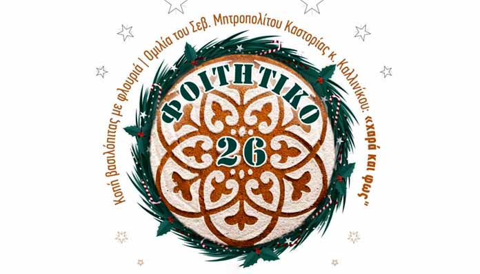 Η Ιερά Μητρόπολη Καστορίας, στο πλαίσιο της ποιμαντικής των νέων διοργανώνει και εφέτος την εκδήλωση «ΦΟΙΤΗΤΙΚΟ 2026», με ευλόγηση και κοπή της Βασιλόπιτας και ομιλία από τον Μητροπολίτη μας, για όλους τους φοιτητές, τις φοιτήτριες, τους νέους και τις νέες.