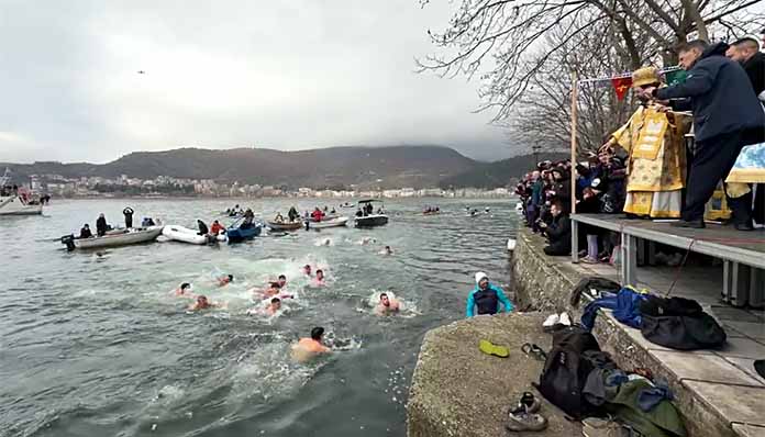 Με τον καθιερωμένο αγιασμό των υδάτων και την κατάδυση του Τιμίου Σταυρού εορτάστηκαν στην Καστοριά τα Άγια Θεοφάνεια, χοροστατούντος του Μητροπολίτου Καστορίας κ. Καλλινίκου, παρουσία επισήμων και πλήθους κόσμου.