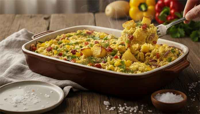 Extra tip: Αν θέλουμε, μπορούμε να προσθέσουμε κομμάτια αλλαντικού, λίγη πιπεριά ή ακόμη και ντομάτα ψιλοκομμένη ανάμεσα στις πατάτες. Όμως η ομορφιά αυτού του πιάτου είναι ακριβώς στην απλότητά του: πατάτες, αυγά, λίγο τυρί και αγάπη.