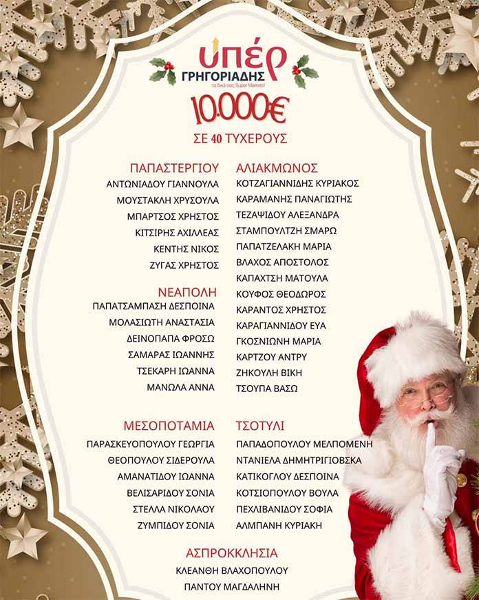 Πραγματοποιήθηκε με επιτυχία η κλήρωση των ΥΠΕΡ Γρηγοριάδης, κατά την οποία μοιράστηκαν 10.000€ σε 40 τυχερούς ΥΠΕΡ τυχερούς.