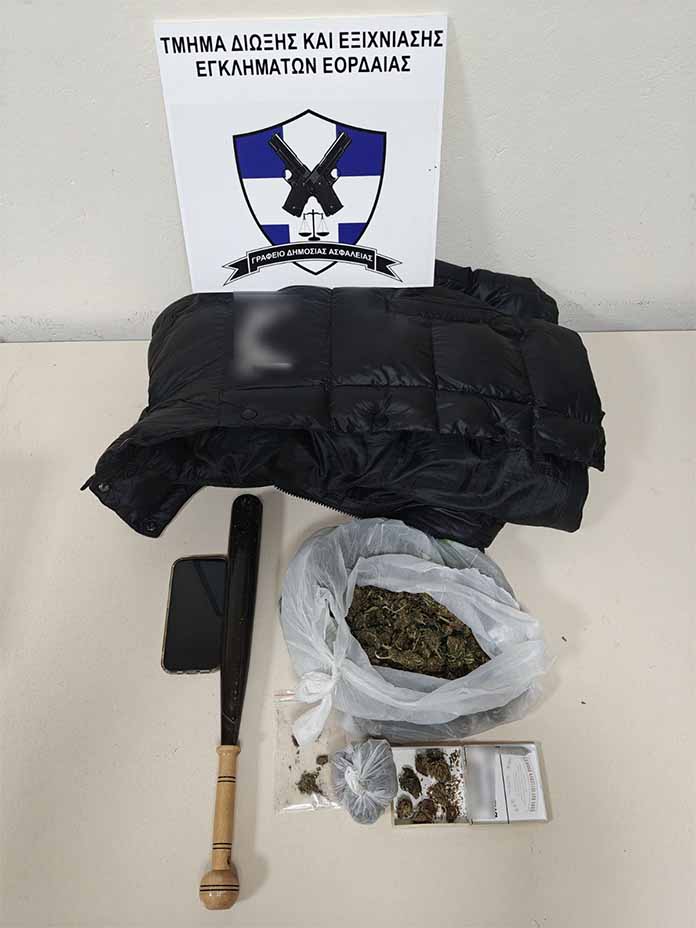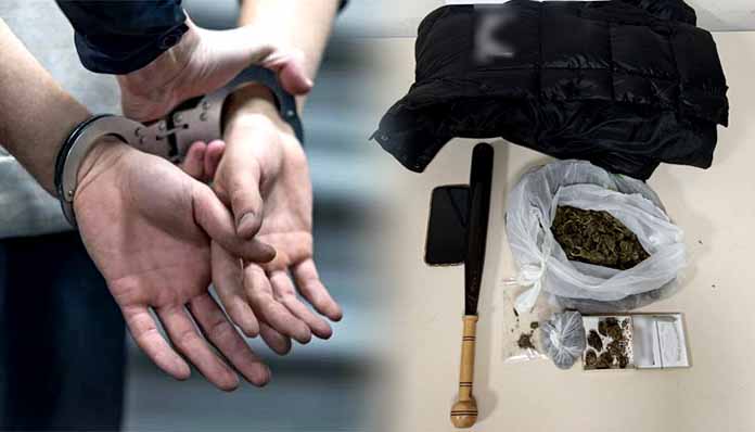 Μεταξύ άλλων κατασχέθηκαν -313,4- γραμμάρια ακατέργαστης κάνναβης, χρηματικό ποσό των -220- ευρώ, ένα ρόπαλο, κινητό τηλέφωνο κ.α.