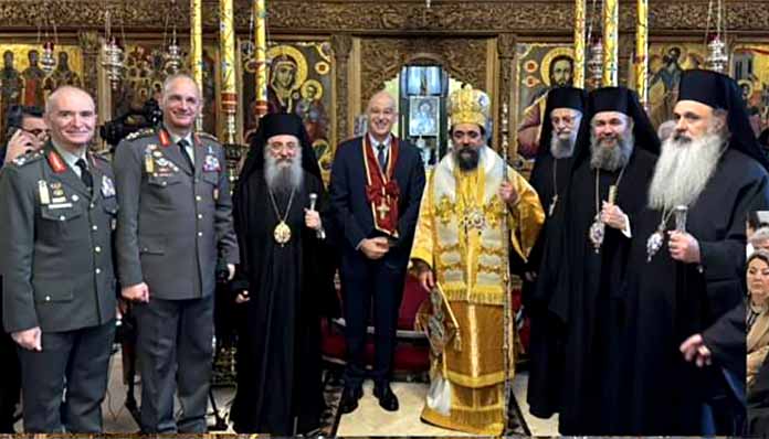 τόν Ὑπουργό Ἐθνικῆς Ἀμύνης κ. Νικόλαο Δένδια, ὁ ὁποῖος συνοδευόμενος ἀπό τούς Ἀρχηγούς ΓΕΕΘΑ Στρατηγό Δημήτριο Χούπη καί ΓΕΣ Ἀντιστράτηγο Γεώργιο Κωστίδη, τόν Διοικητή τοῦ Γ´ Σώματος Στρατοῦ Ἀντιστράτηγο Γρηγόριο Μπουτλιάκη, ἔδωσε ἰδιαίτερη λαμπρότητα στίς ἐκδηλώσεις τιμῆς κατά τήν Κυριακή λήξεως τῶν Καραβαγγελείων.