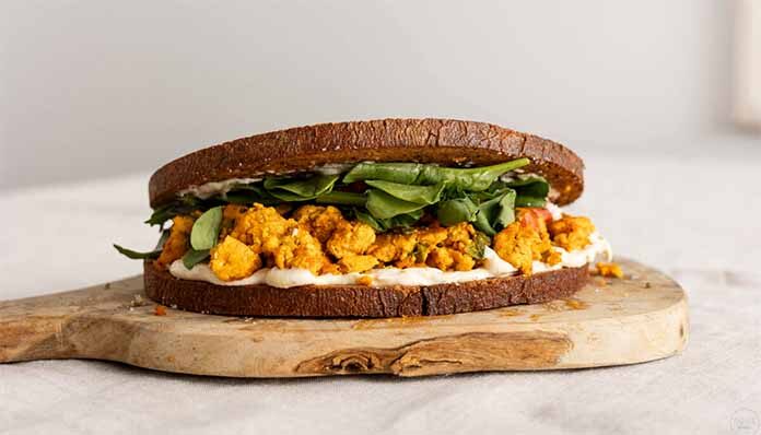 Ένα sandwich που περιέχει 27 γρ. πρωτεϊνης με ψωμί ολικής, scrambled τόφου, χούμους και σπανάκι, ιδανικά για αθλητές και όχι μόνο!