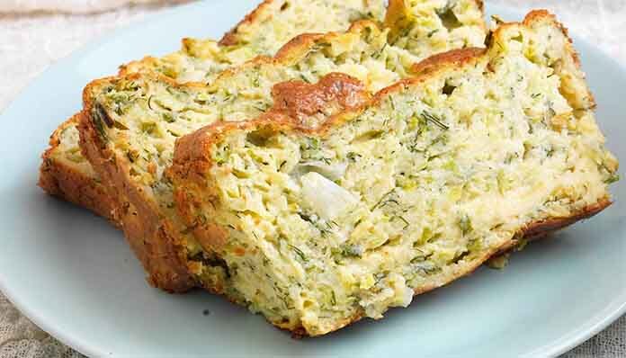 - Αδειάζουμε το μείγμα σε καλά λαδωμένο μακρόστενο πυρίμαχο σκεύος και ψήνουμε σε καλά προθερμασμένο φούρνο: 170°C στις αντιστάσεις για 45 λεπτά, μέχρι να ροδίσει και να σταθεροποιηθεί, ή 160°C στον αέρα στη μεσαία σχάρα για περίπου 35 λεπτά.