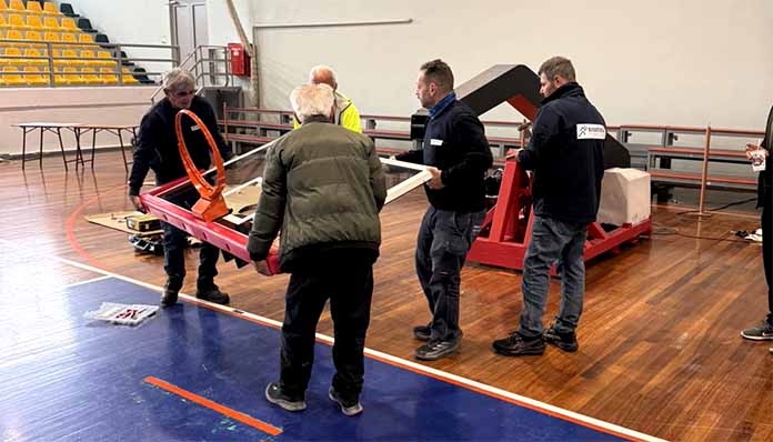 Η παρέμβαση αφορά την προμήθεια ενός σύγχρονου ζεύγους μπασκετών προδιαγραφών FIBA Level 1, που ανταποκρίνονται πλήρως στις απαιτήσεις διοργάνωσης αγώνων υψηλού επιπέδου, αναβαθμίζοντας την ποιότητα και την ασφάλεια των αγωνιστικών συνθηκών.