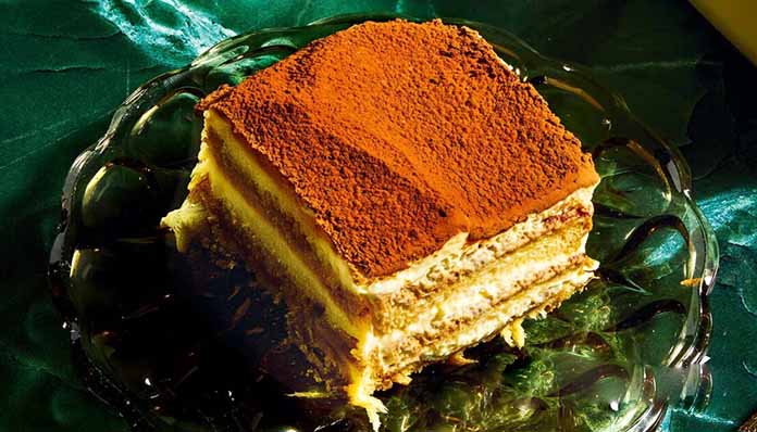 - Λίγο πριν σερβίρουμε, πασπαλίζουμε την επιφάνεια του τιραμισού με τη σκόνη κακάο και σερβίρουμε αμέσως, κόβοντας σε κομμάτια.