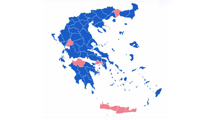 Σε αυτές τις εθνικές εκλογές, η Νέα Δημοκρατία πολλαπλασίασε τις κερδισμένες περιφέρειες και ο νέος χάρτης της χώρας πήρε χρώμα μπλε.